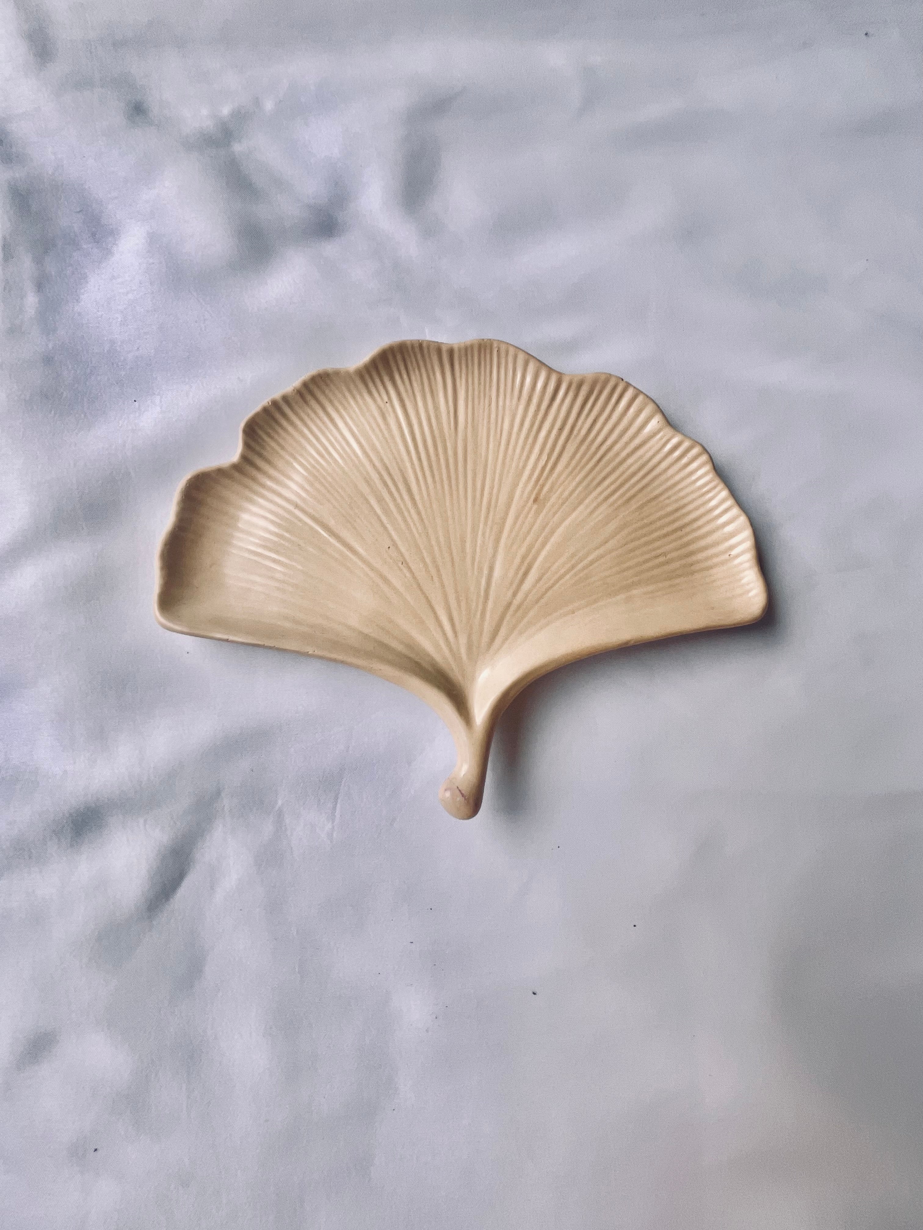 Plateau décoratif en forme de feuille, aux lignes délicates et au relief finement nervuré. Il apporte une touche naturelle et élégante à votre intérieur. Idéal pour déposer bijoux, clés ou petits objets, ou simplement comme élément décoratif raffiné.